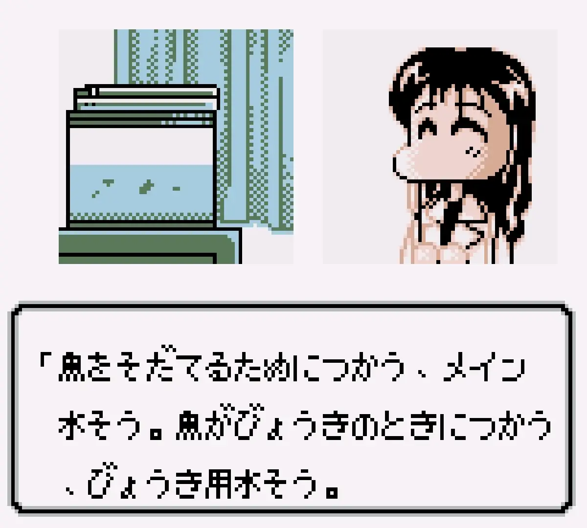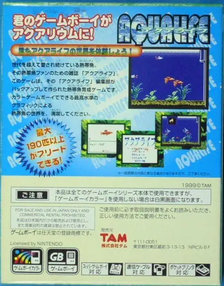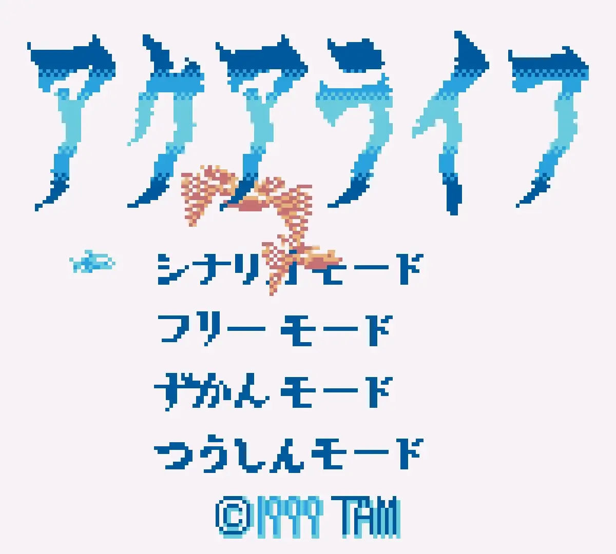 Choose your favorite tropical fish, aquatic plants, decorations, etc. in the aquarium, and keep the tropical fish in the Game Boy. Feed it, replace it with water to clean it, and grow it like a real tropical fish. There are more than 20 types of tropical fish in all. Some tropical fish cannot be kept in reality. It is compatible with pocket printers, and it is also possible to retrieve tropical fish data. There are two modes, a “scenario mode” in which the number of tropical fish that can be bred increases as you clear the three scenarios, and a “free mode” in which you can freely breed those fish. You can also exchange fish and eggs with your friends using the communication cable.