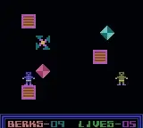 The Berks have arrived! They are everywhere, protected by their ever faithful homing Drones, which cannot be destroyed (only stunned temporarily). Your mission – clean each territory (29 screens) of the mindless Berks using your expanding Terror Tank. The number of Berks left to be destroyed is indicated in the bottom of the screen. How long can you survive?