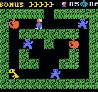 The object of the game is to collect the various objects on each screen and get out of the top again while avoiding the guards. You will have 5 Cuthberts to start. Each object you pick up will increase your score (100 points). You will also receive a time bonus for completing a sheet quickly. You start with 6 bombs. These can be laid, one at a time, by pressing the “A” button. Once laid, they can be detonated by pressing “A” for a second time. These will destroy the guard, but not You! You can pick it up with no harms. An extra bomb is awarded for each sheet completed, but maximum of 6 bombs you have. Good luck!