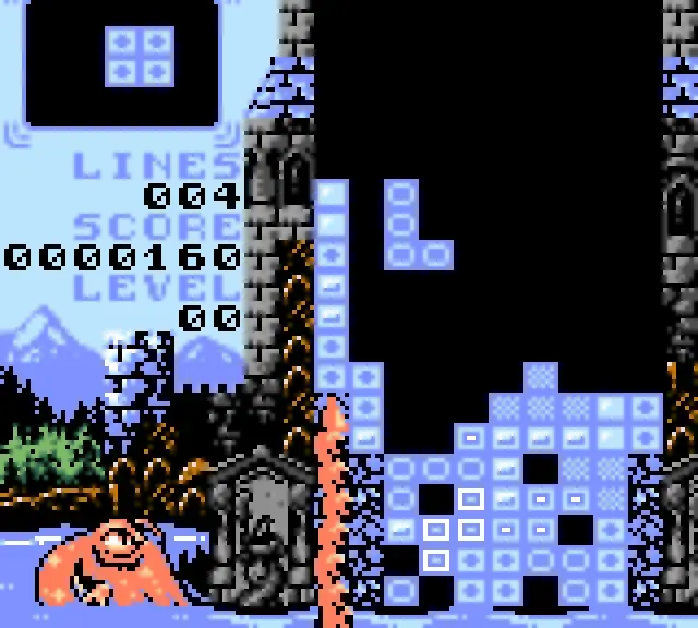 As the Kraken climbs the walls of your fortress, repel it by hurtling blocks down at the monster. As lines are cleared, the Kraken will retreat, but only momentarily. Can you survive the night, and live to fight another day? Compatible with all Game Boy models, and enhanced for the Super Game Boy! Featuring Two-Player simultaneous play!