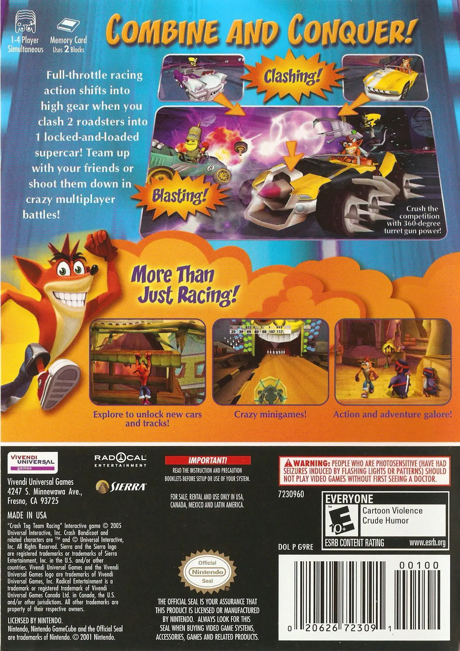 Similar to previous racing games in the Crash Bandicoot series, players are able to choose from a variety of characters from the series, including both notable allies and enemies, along with several notable new characters. In addition, Crash Tag Team Racing introduces the ability to ‘clash’ with another racer, allowing the two to create a hybrid vehicle to cooperatively destroy their opponents.