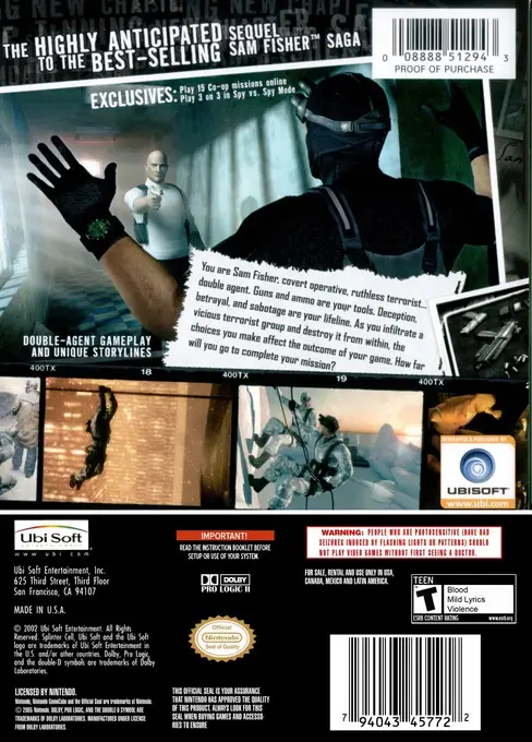 Veteran agent Sam Fisher is back. But he’s never faced an enemy like this before. To stop a devastating terrorist attack, he must infiltrate a vicious terrorist group and destroy it from within. For the first time ever, experience the relentless tension and gut-wrenching dilemmas of life as a double agent. As you infiltrate a terrorist organization in its American headquarters, you must carefully weigh the consequences of your actions. Kill too many criminals and you’ll blow your cover. Hesitate too long and millions will die. Do whatever it takes to complete your mission, but get out alive.