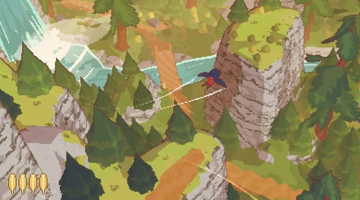 Collect hidden treasures to reach new heights. Try taking a dive off the mountain peaks to soar above the forests.