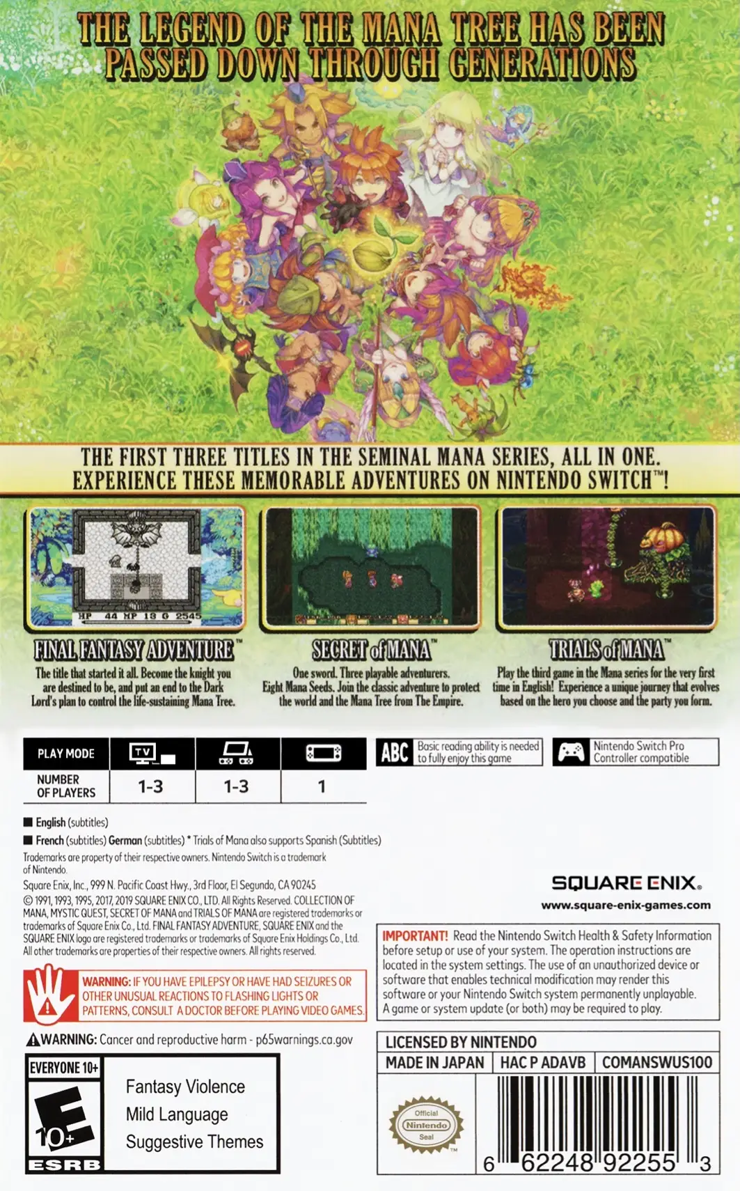 Collection of Mana brings the first three titles in the seminal Mana series to the Nintendo Switch in an all in one package. The collection is an essential bundle for new fans who want to play the classics for the first time and nostalgia seekers who want to relive fond memories and high fantasy adventures on the go.