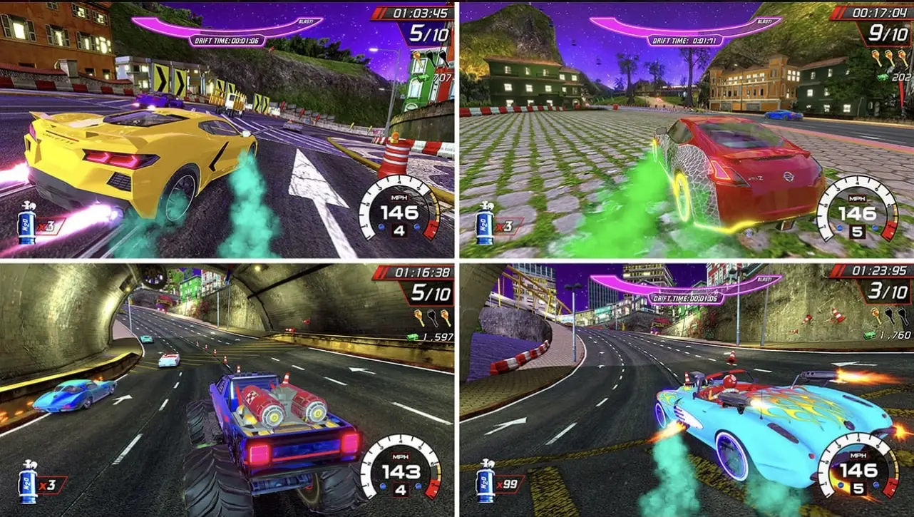 Up to four players can race together, so pick your favorite vehicle and hit the road!
