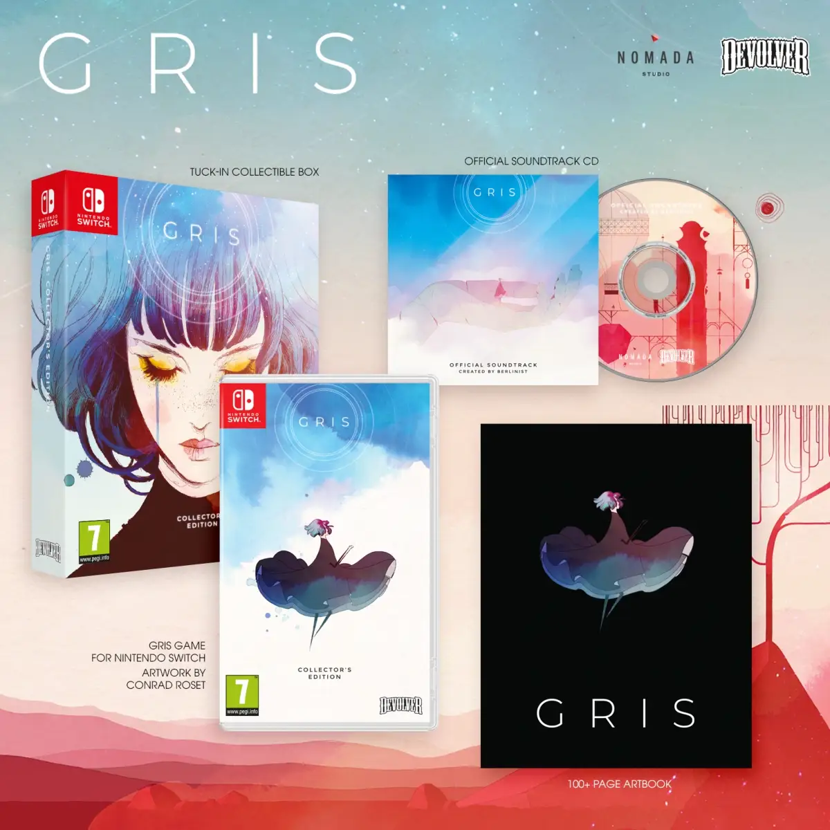 Gris is a hopeful young girl lost in her own world, dealing with a painful experience in her life. Her journey through sorrow is manifested in her dress, which grants new abilities to better navigate her faded reality. As the story unfolds, Gris will grow emotionally and see her world in a different way, revealing new paths to explore using her new abilities.