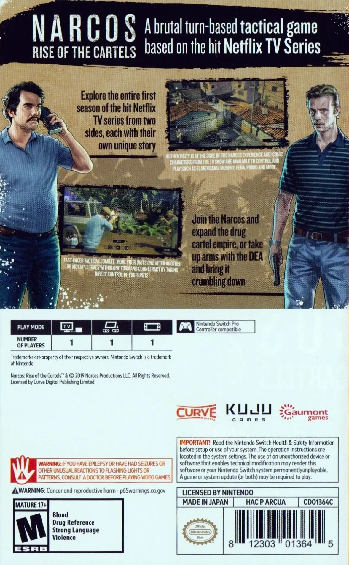 Wage war against the drug trade or expand it in Narcos: Rise of the Cartels for Nintendo Switch. Story-driven gameplay straight from the hit TV series keeps the experience fresh and exciting, and your choices in the enthralling turn-based combat steer the plot. Explore memorable sites and upgrade your skills for hours of fun in Narcos: Rise of the Cartels.