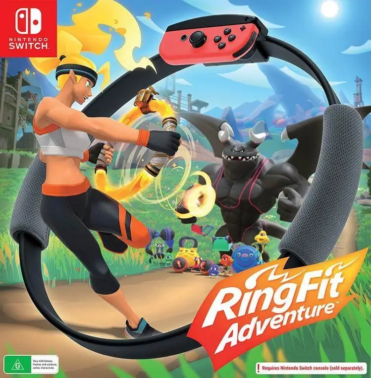 Explore a huge fantastical world and defeat enemies using real-life exercise in the Ring Fit Adventure game for Nintendo Switch