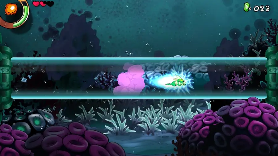 As a return to the style of the first three entries in the series, the game follows the half-genie Shantae as she explores an interconnected world. During her journey, Shantae encounters towns with non-player characters to interact with, as well as dungeon-style labyrinths containing new abilities to unlock and bosses to defeat. Shantae retains her ability to transform into other creatures, now utilized via an ability called “fusion magic” that allows her to instantly transform and use a creature’s ability without having to select it like in past games. Additional special abilities can be performed by dancing. A new collectible card system allows players to obtain monster cards and use them to augment Shantae’s abilities. Like other games in the series, completing the story awards the player with bonus artwork based on their final time and completion percentage, and unlocks a New Game Plus mode, which gives Shantae all of her transformations from the start of the game, in order to facilitate speedruns. The game follows the half-genie Shantae as she and her friends are invited to a tropical island to participate in the Half-Genie Festival. During a performance, the other half-genies in attendance mysteriously disappear, and Shantae must search the island and the sunken city beneath it to find them and uncover the reason for their abduction. Along the way, she runs afoul of her longtime nemesis Risky Boots and the mysterious rulers of this island, the “Seven Sirens”.