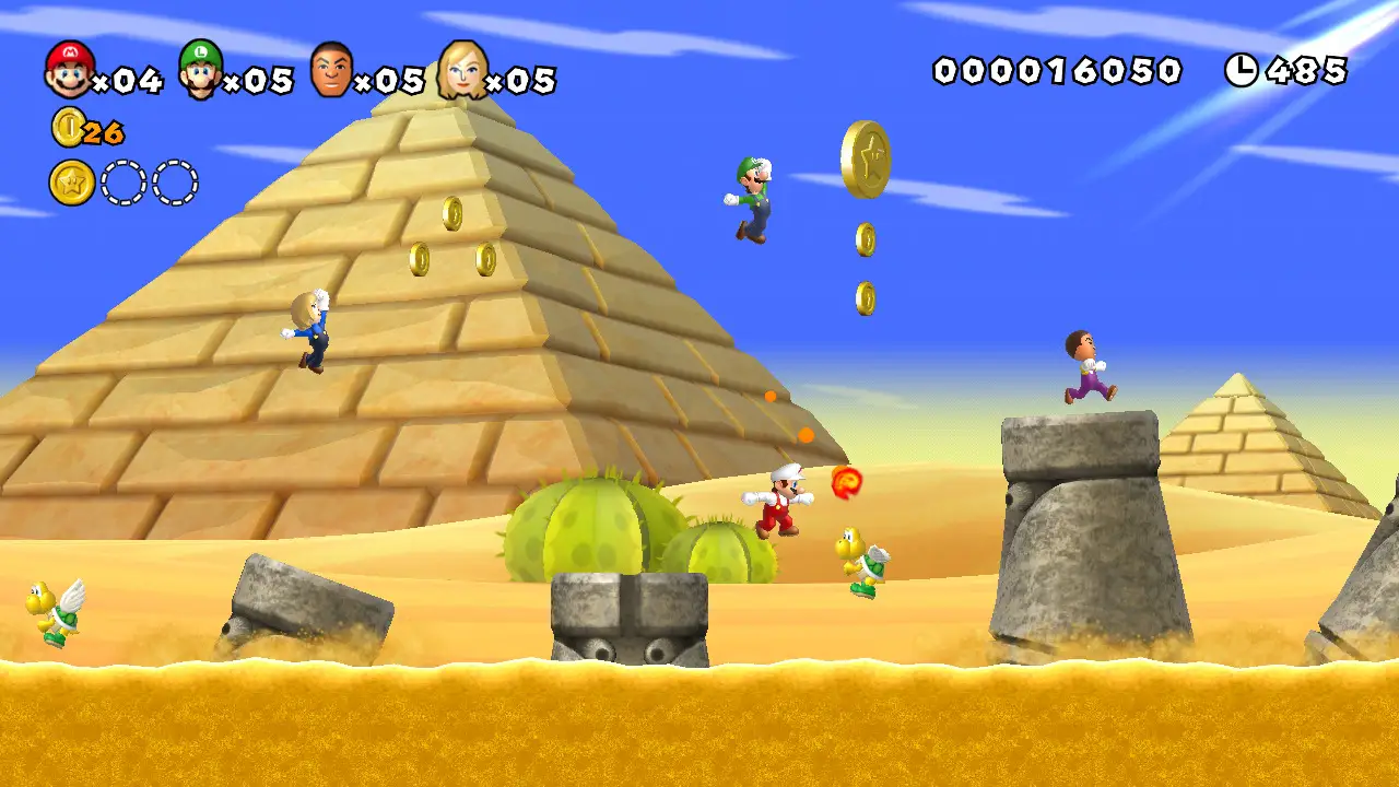 New Super Mario Bros. U is a new, side-scrolling adventure featuring Mario, Luigi, Toad … and your Mii character. Now’s your chance to step inside the Mushroom Kingdom and explore new worlds, new power-ups and new ways to play. Up to five players* can jump into the fun, with up to four people using Wii Remote controllers and one on the Wii U GamePad. The experience is different, depending on which controller is used.