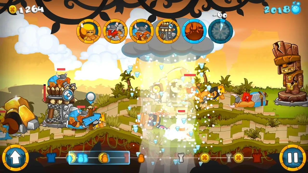 Pick from 4 totally different factions: the brutal Vikings, devious Aztecs, crafty Chinese, as well as Chief Meat’s army. Each faction has its own reason to go to battle and its own campaign to play, adding up to many hours of side-splitting action-strategy.