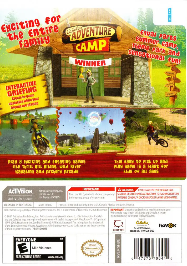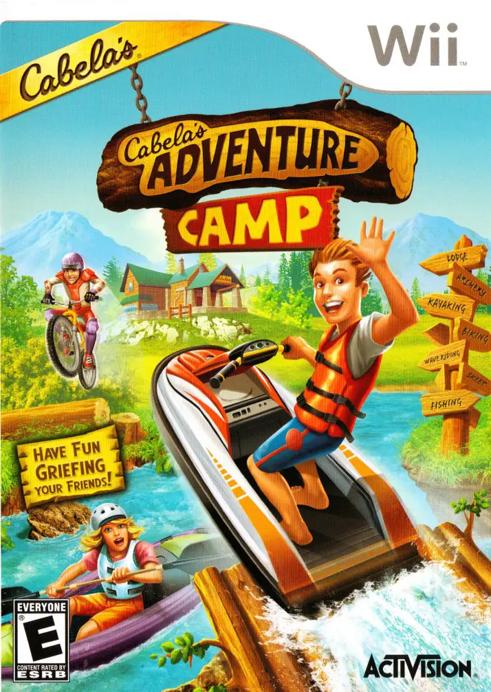 There are six playable characters, all children or young teens who are “attending” a Cabela’s-themed camp. Hair and clothing colors can be changed, and stats are recorded. Another child, known as Greg, exists to grief the player during some points in certain events, which includes things like dropping boulders into the river during a kayaking event. Greg takes no active role in the gameplay, rather, unusual challenges or obstacles are “blamed” on the character.