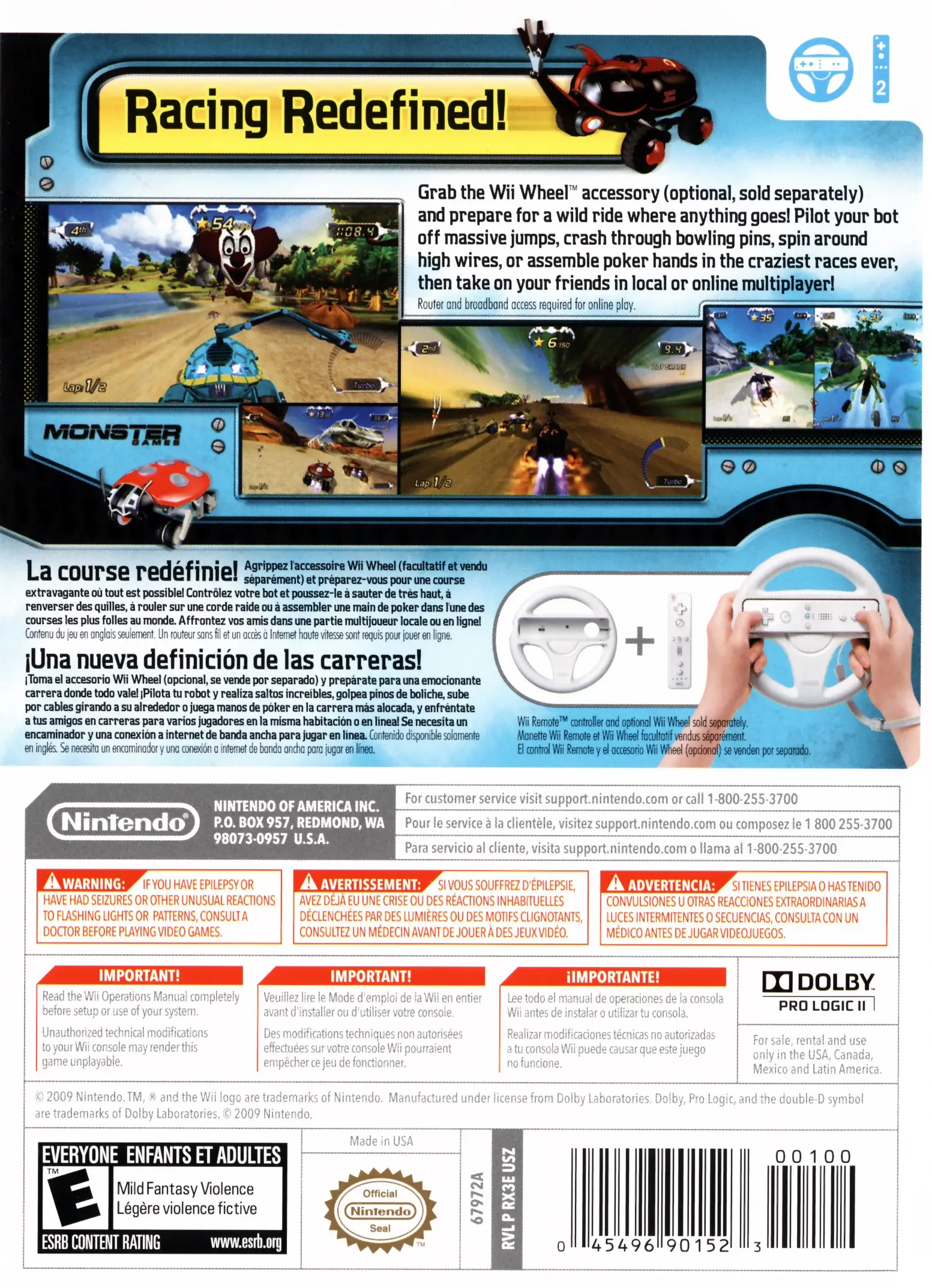Excitebots is controlled with the Wii remote horizontally or optionally with the Wii Wheel. Most of the games are played on courses large in size with many opportunities to take meandering paths. The 25 different courses offered are modeled after real locations on Earth. Because of the size of each course, most races are two laps long and offer opportunities to gain massive altitude, perform various maneuvers, and obtain various items.