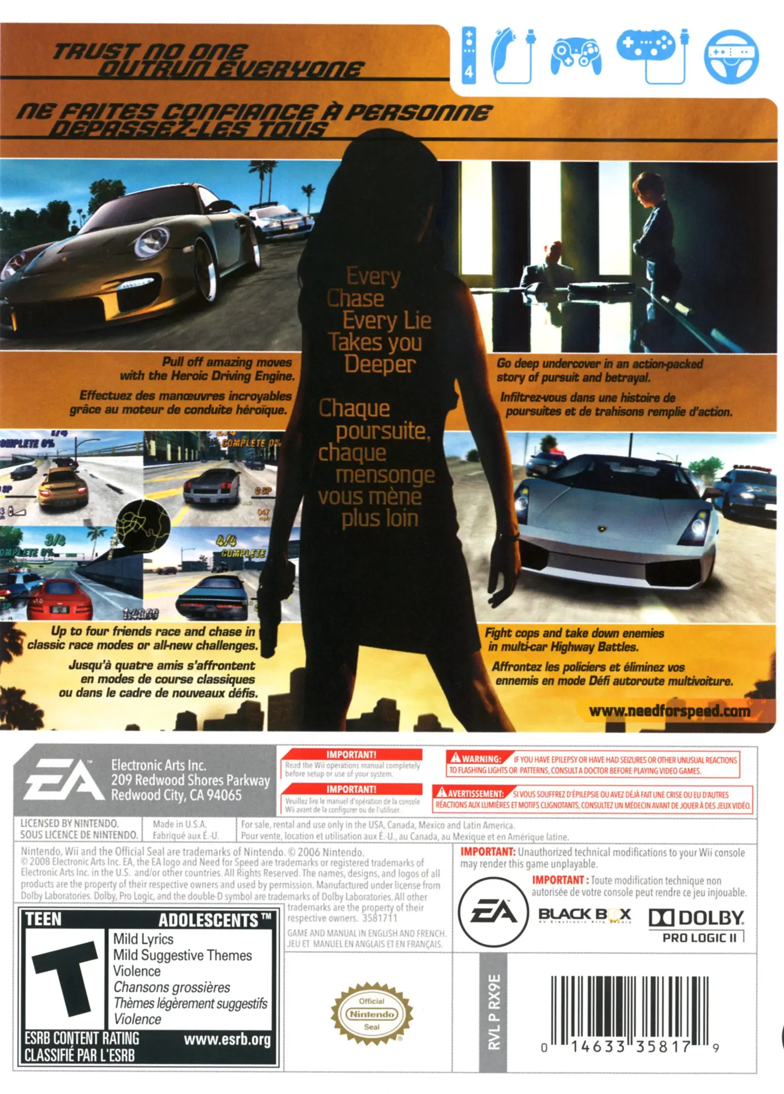 Undercover features a new open world map consisting of 109 miles (175 km) of road and a large highway system, making it the largest Need for Speed “world” EA has created so far. The game’s environment consists of four boroughs: Palm Harbor, Port Crescent, Gold Coast Mountains, and Sunset Hills. In the Wii and PS2 versions two boroughs are copied off Need for Speed Most Wanted and put into different positions. These four boroughs make up the city, Tri-City (referring to the real-life city in Tri-City, Oregon), presumably a city located on the Gulf Coast or on the California Coast although the city itself heavily resembles Miami.