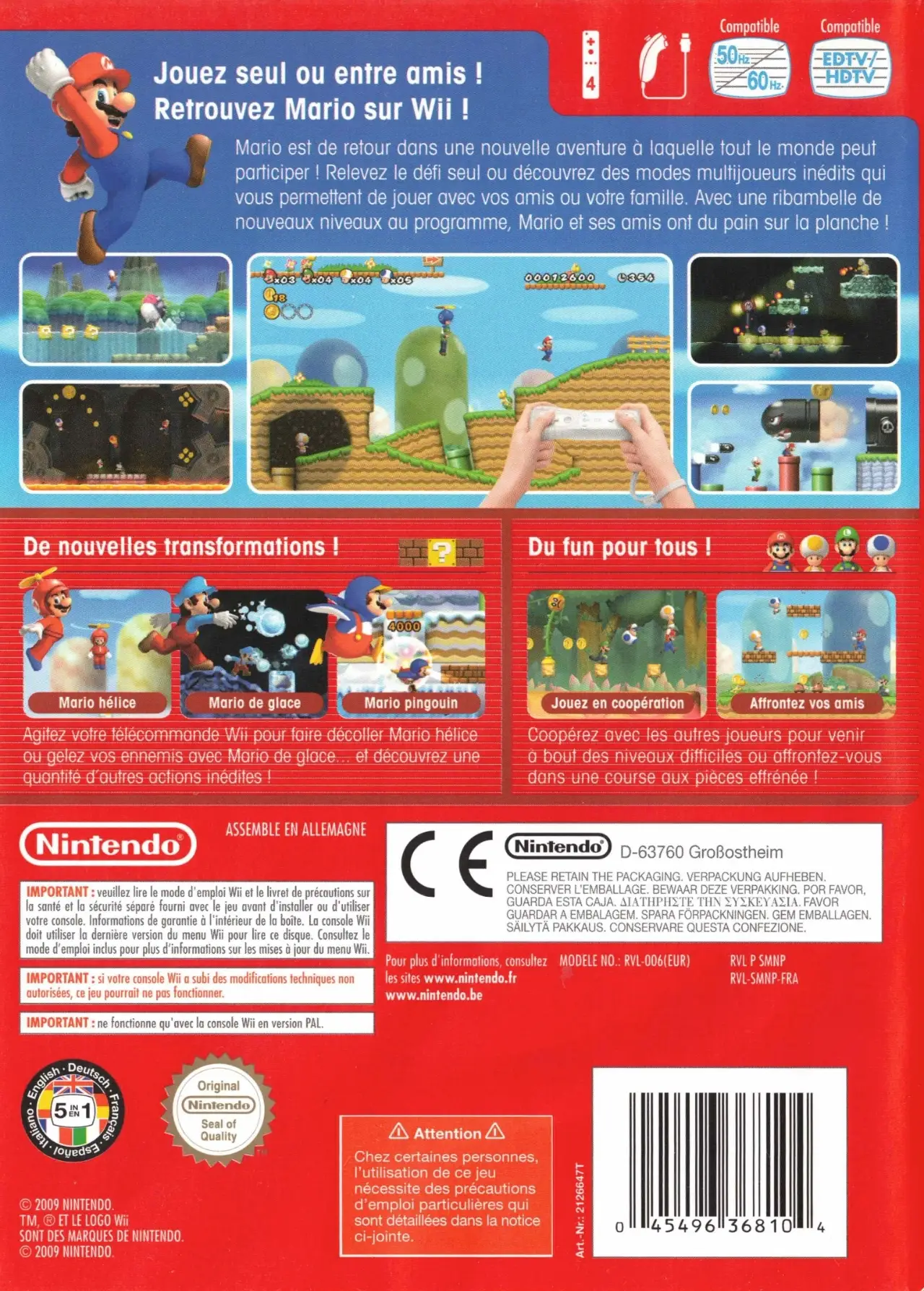 Developers at Nintendo have dreamed of creating a simultaneous multiplayer Super Mario Bros. game for decades. The Wii console finally makes that dream come true for everyone. Now players can navigate the side-scrolling worlds alone as before or invite up to three others to join them at the same time on the same level at any point in the game for competitive and cooperative multiplayer fun. With the multiplayer mode, the newest installment of the most popular video game franchise is designed to bring yet another type of family entertainment into living rooms and engage groups of friends in fast-paced Super Mario Bros. fun.