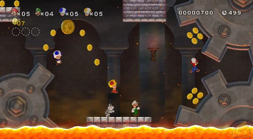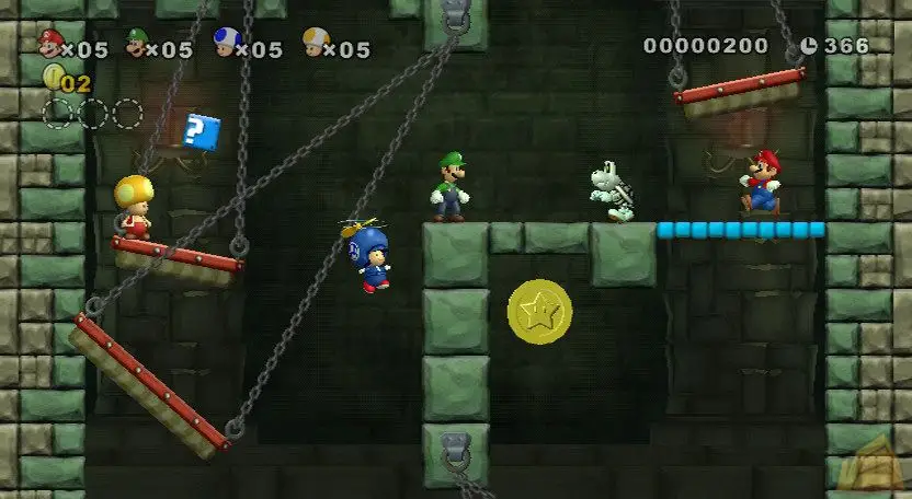 – New Super Mario Bros. Wii offers a combination of cooperation and competition. Players can pick each other up to save them from danger or toss them into it.