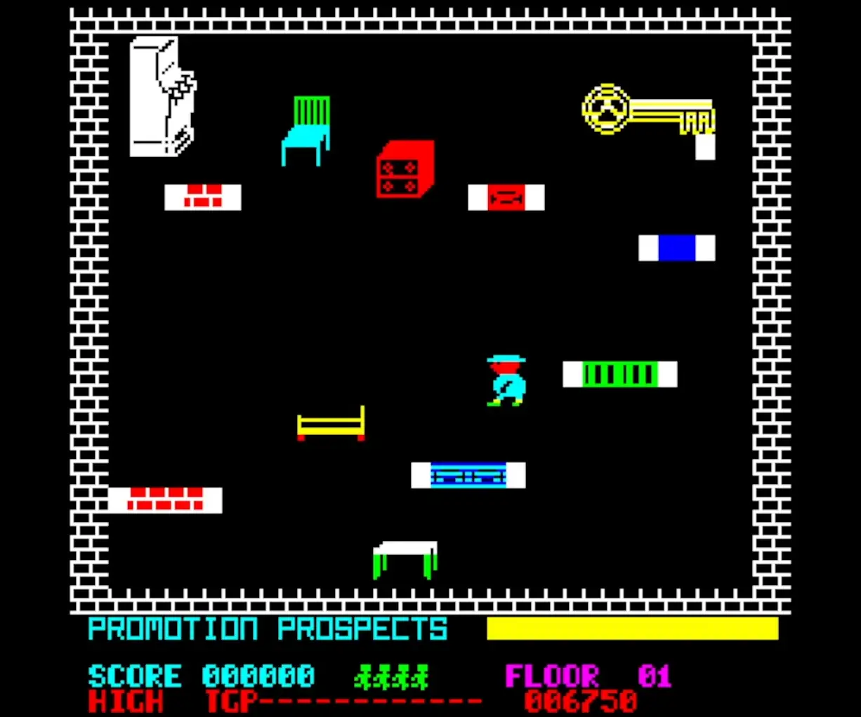 The nightmare is that some of the goods being sold come alive and get in the way of the manager as he moves around. You must avoid coming close to anything that is moving, though you might find that you can use moving objects as ledges on occasions – this is living very dangerously! If you get too close to a moving object (p.s. the till can also be dangerous at the wrong time!) you will lose one of your four lives. Extra lives are awarded for every 10,000 points.