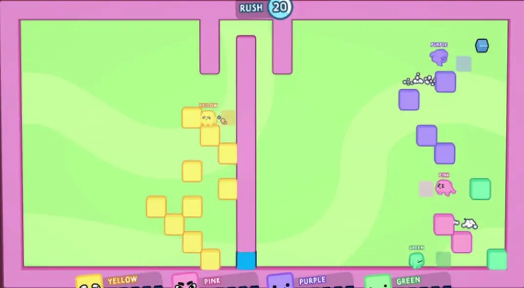 Block'Em! is an action-filled block-building party game for 2 to 4 players! The controls are simple but the road to victory is complex: be the first to reach the goal or be the last Blocky standing!