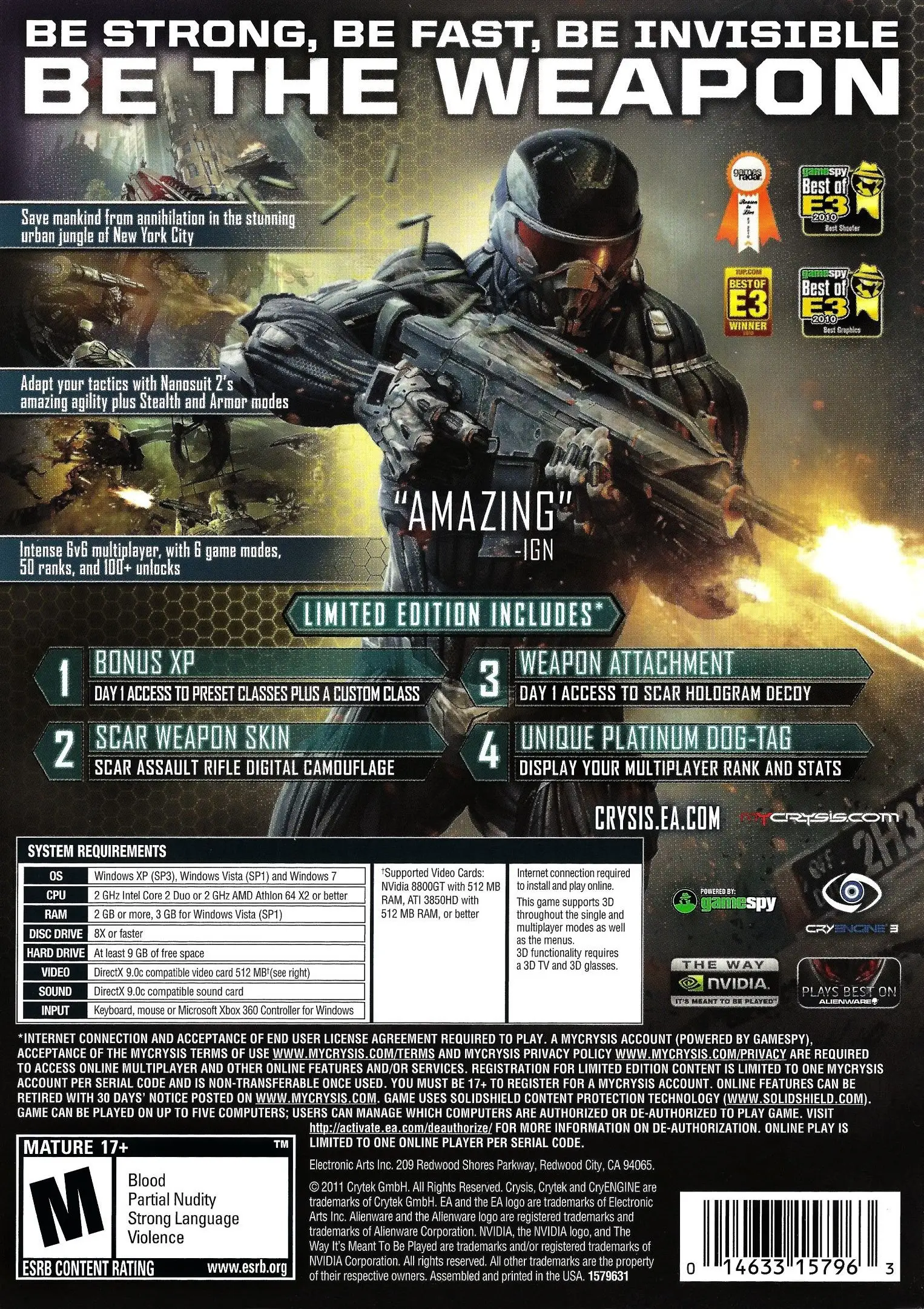 Yet one man will inherit that means to survive. One supersoldier, wielding the combat enhancement technology of the future with Nanosuit 2, will make the last stand to save humanity from destruction in the urban jungle that is New York City.
