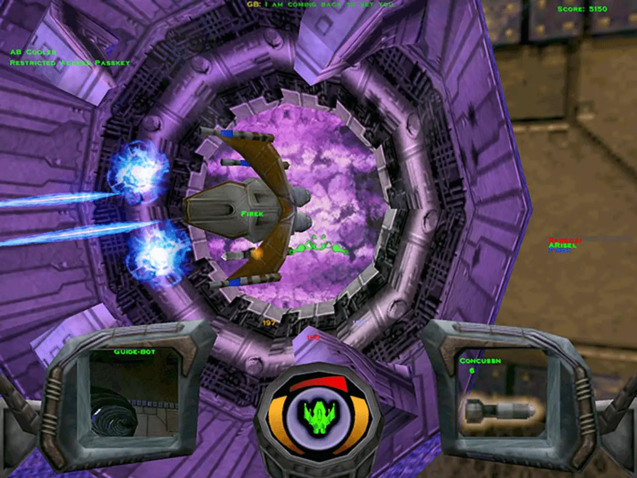 Part 3 in the vehicular first-person shooter series. Descent 3 starts off right where the warp-core exploded in Descent II. You miraculously survived the incident, only to be left floating in space, unconscious, headed right towards a sun. A PTMC mining ship snatches you just in time, but not for free. At the price of saving your life, you now have to endure some of the same duties you had to do in the first two Descent adventures, but with a whole lot more going on. Eradicating enemy mining bots is one of your goals, but your mission also includes the investigation behind the virus causing the malfunction of the mining bots’ AI. Features 15 levels, 20 weapons, 30 new robots, and the ability to travel inside structures and on the surface.