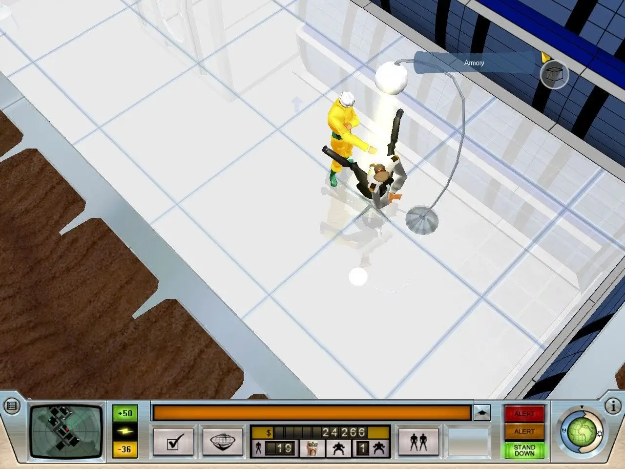 Evil Genius is a single player real-time strategy and simulation video game developed by Elixir Studios and published by Sierra Entertainment, released on 28 September 2004. The game is inspired by the spy thriller genre (notably the James Bond film series). Similarly to Dungeon Keeper, the game turns the traditional plotline on its head, with the player acting as the villain, evading the comically stereotyped forces of justice. Gameplay revolves around the player building an island fortress and achieving clichéd world domination.