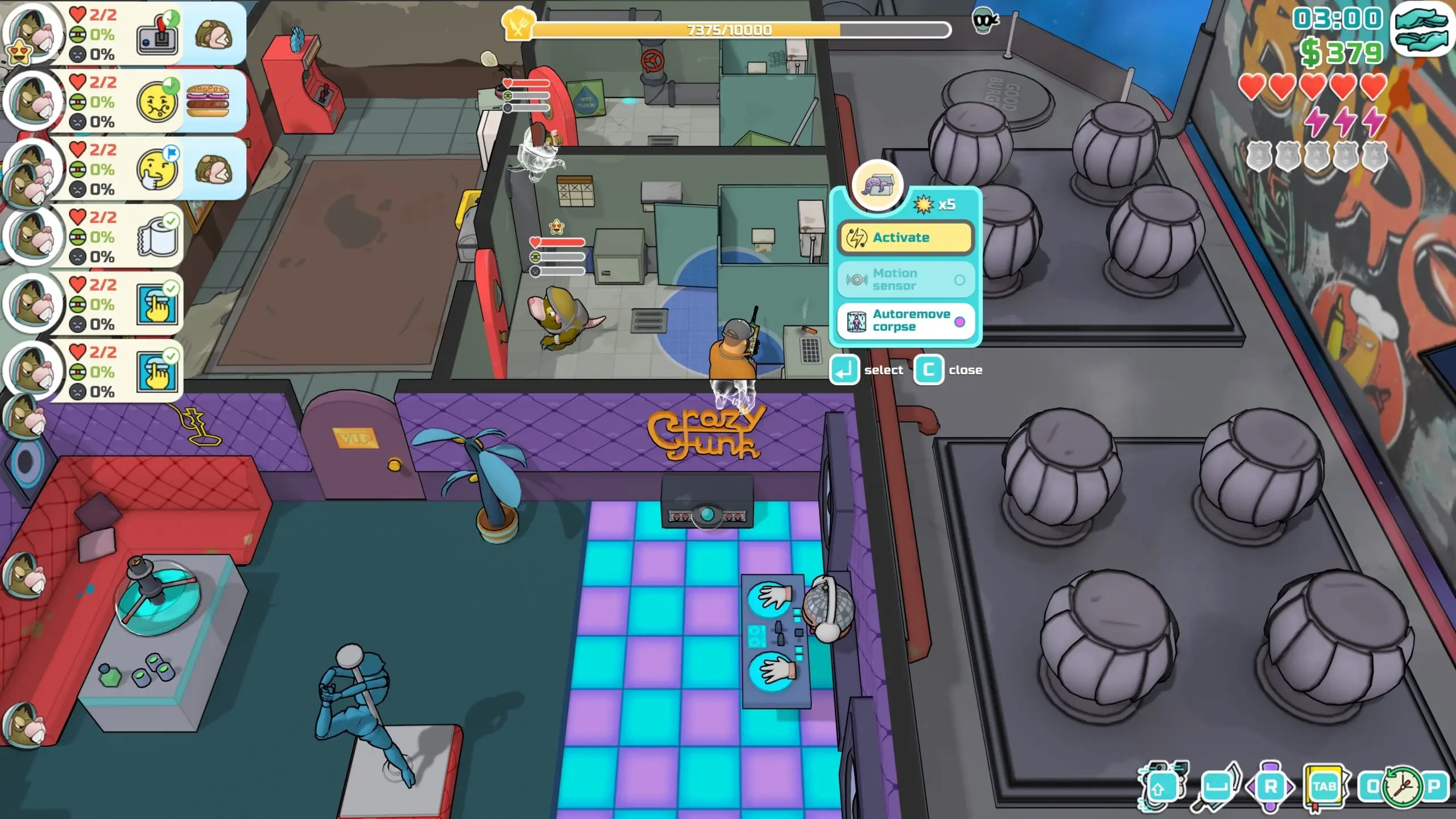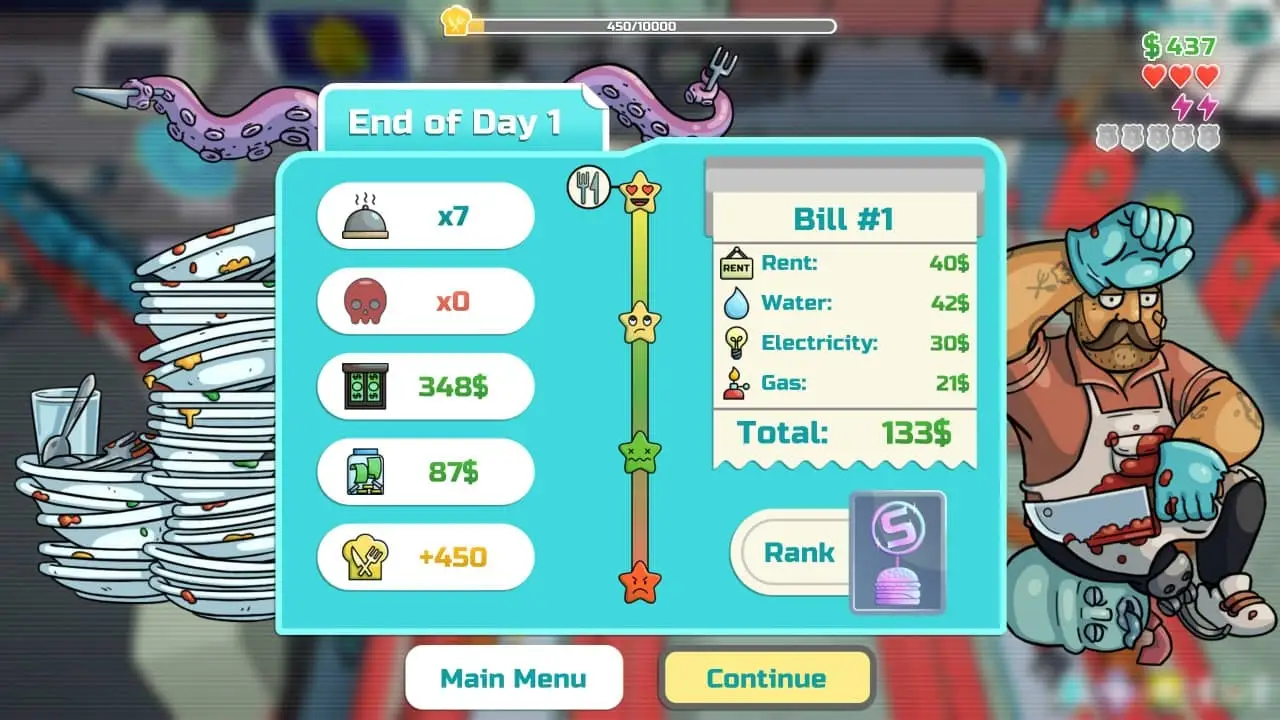 During the day, different aliens arrive to taste those delicious burgers at your space restaurant. Well, or to be killed and turned into minced meat. The freezers don’t fill themselves, right? You can attack them head-on with your trusty meat cleaver or use a variety of traps to dispose of them in more creative ways.