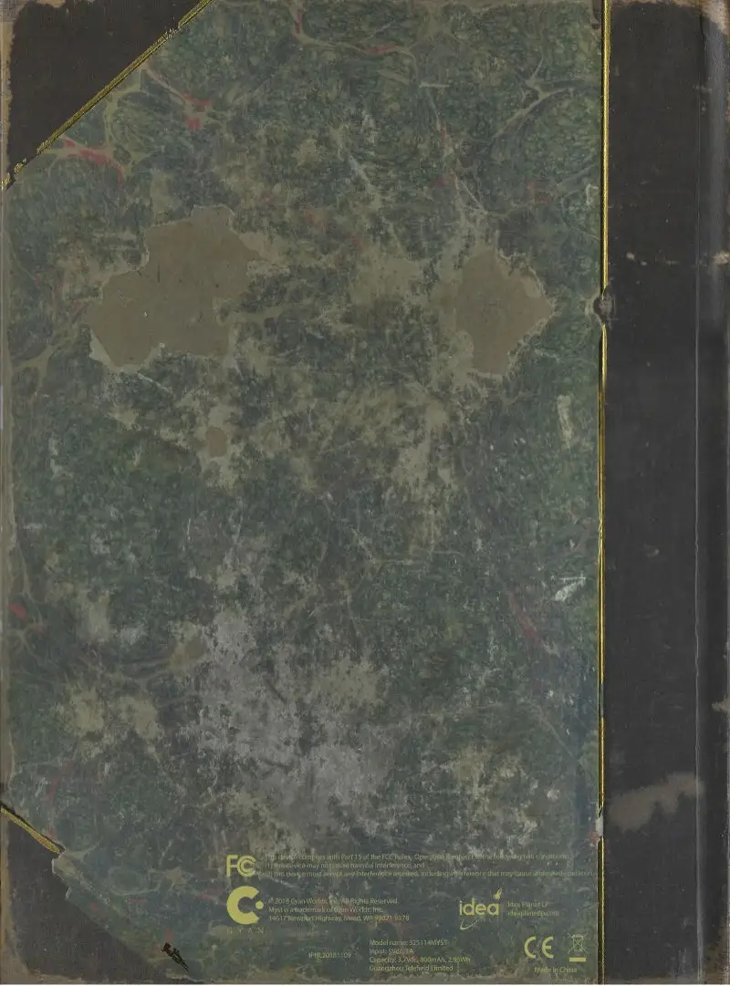 At higher pledge levels, the book/box has a USB connection which is used to charge the LCD battery, and depending on the pledge level, may also allow access to digital copies of the three Myst novels, as well as high-resolution scans of some of the Riven design maps.