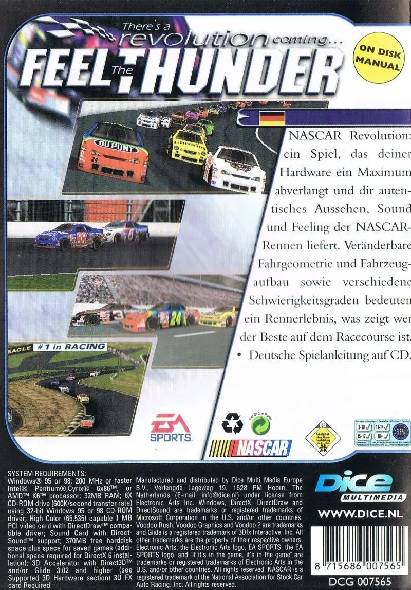 NASCAR Revolution is a racing video game developed by Stormfront Studios and published by EA Sports (a division of Electronic Arts). It is part of the EA Sports NASCAR Racing Game series, being the third title in the game series. The game was released in 1999 for Microsoft Windows 95 and Windows 98, unlike previous games in the franchise that were console exclusives. It features race car drivers from the 1998 and 1999 NASCAR Cup Series seasons like Kyle Petty and Dale Earnhardt.