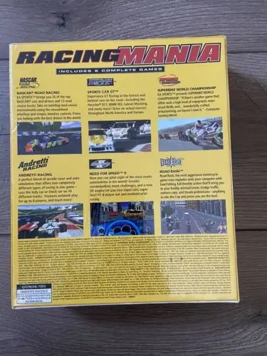 Includes: NASCAR Road Racing, Sports Car GT, Superbike World Championship, Andretti Racing, Need for Speed II, and Road Rash.
