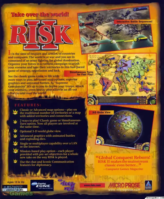 See the classic game come to life with more ways to play, advanced map options, superior graphics, and animated battles. It’s up to you to deploy your troops, attack your enemies, and even betray your allies, in an aggressive effort to take over the world!