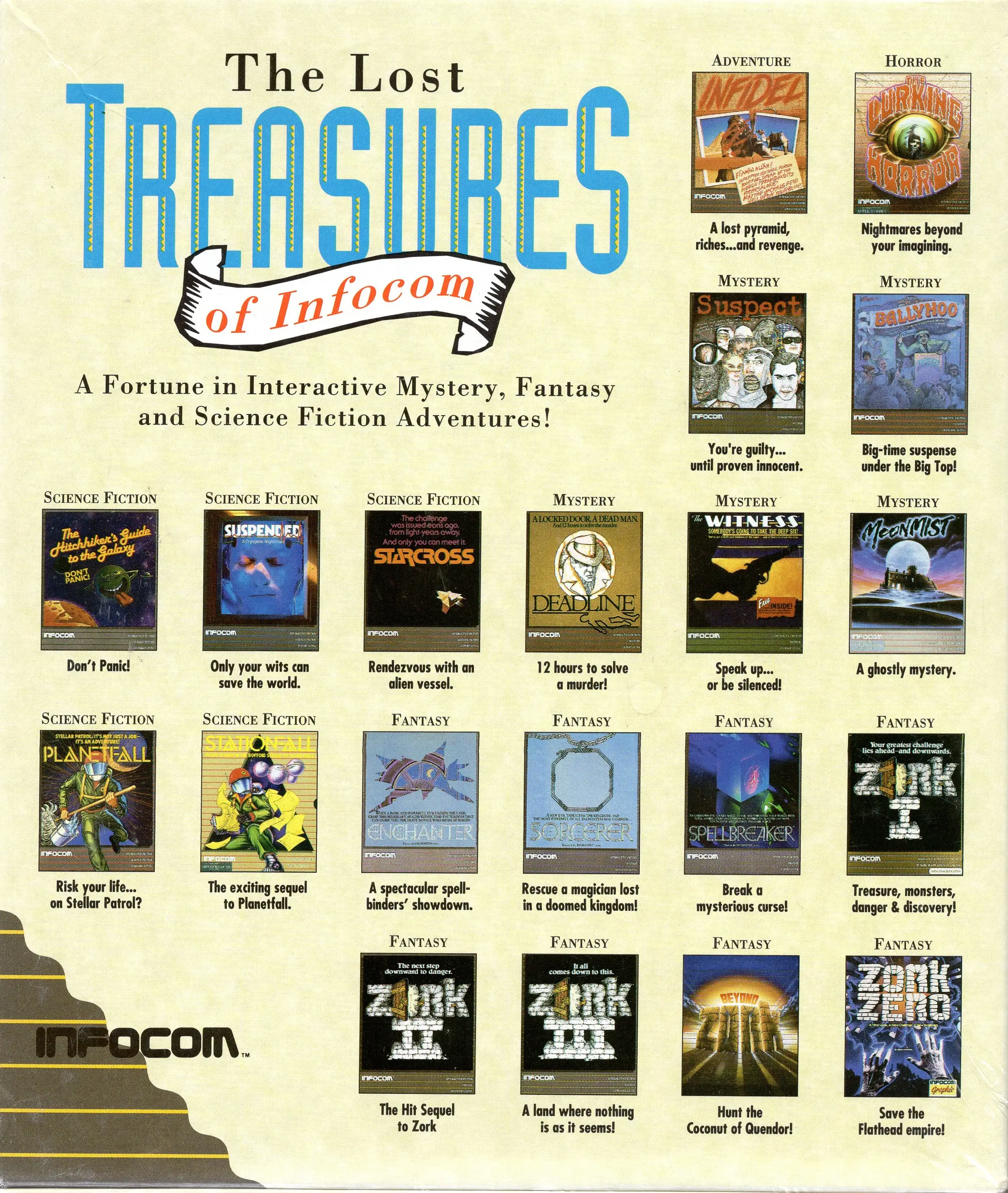 The Lost Treasures of Infocom is a collection of 20 computer games from interactive fiction pioneer Infocom, released in 1991. It was available in MS-DOS, Apple Macintosh, Amiga, and Apple IIGS versions, as well as a cross-platform CD-ROM version, followed by a re-release on the Apple Computer iOS platform in 2012. Infocom was closed in 1989 by its then-parent company Activision. Still holding the copyright to nearly all the past Infocom titles, Activision bundled 20 of the most popular into this package. The games included are: