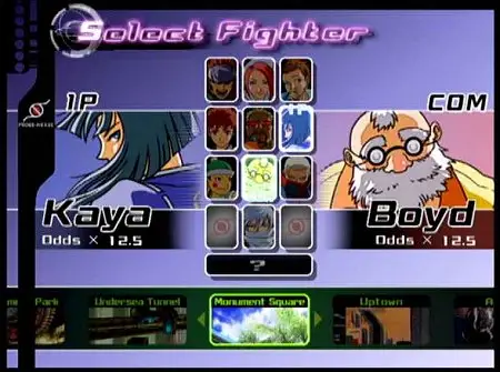 In the underground of Zone Prime, PROBE-NEXUS also sponsors a tournament known as the Fight for Survival, or F.F.S., where fighters are gathered from the city’s slums and compete for sport. The first Rumble Fish game follows the fifth F.F.S. tournament.