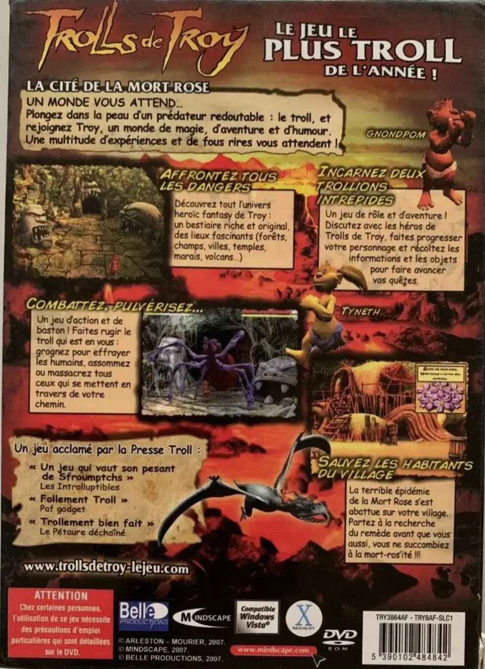 Trolls de Troy : La Cité de la Mort Rose sur PC est un jeu d'aventure issu de l'univers de la bande dessinée de Mourier et Arleston. Vous y dirigez deux petits trolls devant lutter contre des humains bien décidés à mettre fin à votre race en vous envoyant dans un monde tout beau tout rose, à l'opposé complet du votre. Avec quelques éléments issus du point'n'click, le jeu reprend le ton humoristique de la série.