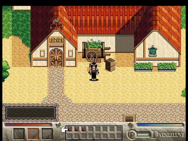 D+Vine[Luv] (pronounced Divine Love) is a typical J-RPG, using a top-down perspective with a slightly isometric representation, which also utilizes visual novel segments for adventure elements. The player takes control of Hyde, an adventurous lad who has a knack for exploring dungeons in search of relics from the old world. One day, he arrives at the town called Arvil where he hears a rumor about a nearby unexplored cave. He heads there determined to find new relics, not minding the fact that noone's been there in ages and the place is probably infested with monsters. To his surprise, he doesn't discover and relic or a treasure, but instead, a mysterious girl named Yura. She has apparently lost her memory and can't remember anything but her name.