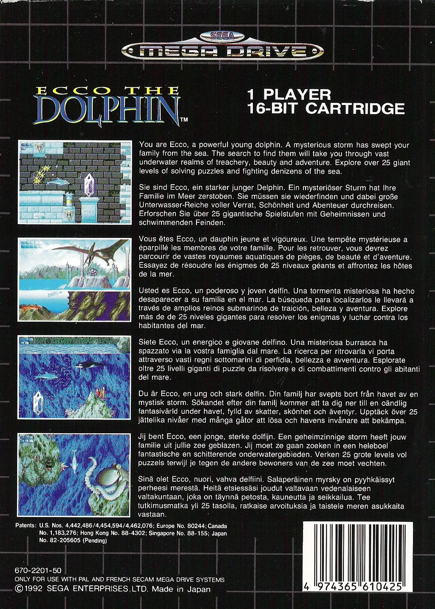 The storyline is actually deeper that one may think by looking at the box illustration. As Ecco, you are the only dolphin who managed to escape from a giant whirlpool which sucked down your entire pod. The five shining stars on your forehead show that you are the chosen one to save them. But that task will be not be an easy one, as you will have to travel through time and space with the Atlantean time machine, and meet the mystical Asterite in order to defeat the Vortex Queen.