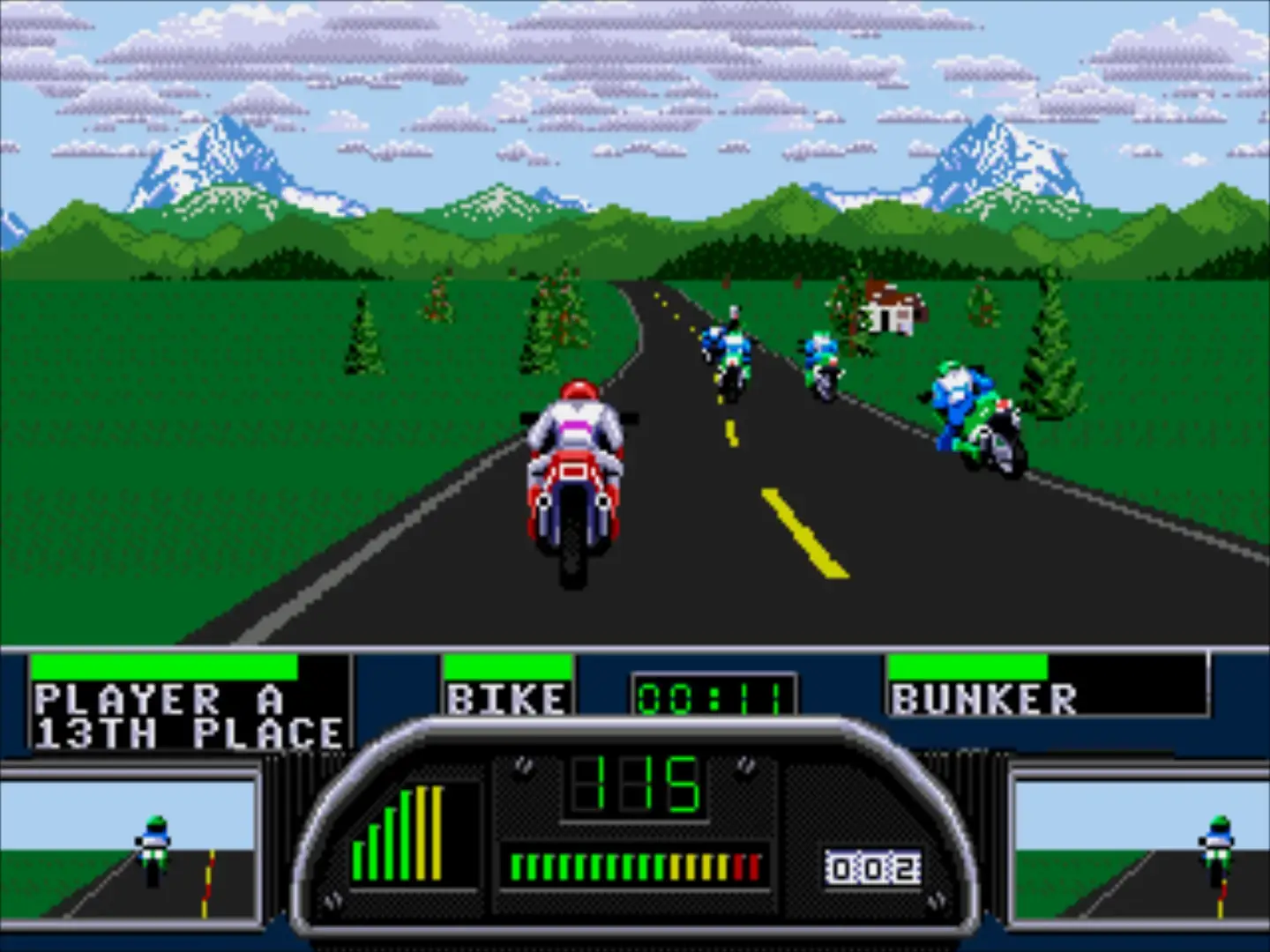 The races took place in the U.S. states of Alaska, Hawaii, Tennessee, Arizona, and Vermont, on progressively longer two-lane roads. Races would be won by placing first, second, or third in each of the five tracks (as opposed to the first game, which would allow a victory by placing fourth as well). After all five tracks were won, the player would advance to the next level, where the track would be longer, the opponents faster, and much more money at stake for a victory or a loss.