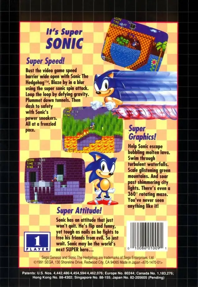 Sonic the Hedgehog is the first of many games starring Sega's premier hedgehog, Sonic. It's a side-scrolling platform game with a difference: speed. Sonic rushes through levels with incredible speed, allowing him to traverse loops and jumps with ease.