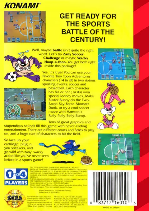 Now those crazy Tiny Toon Adventures characters are creating sporting havoc! Create teams from amongst your favorite toons – each with their own individual techniques – for the wackiest games of soccer and basketball you’ve ever seen!
