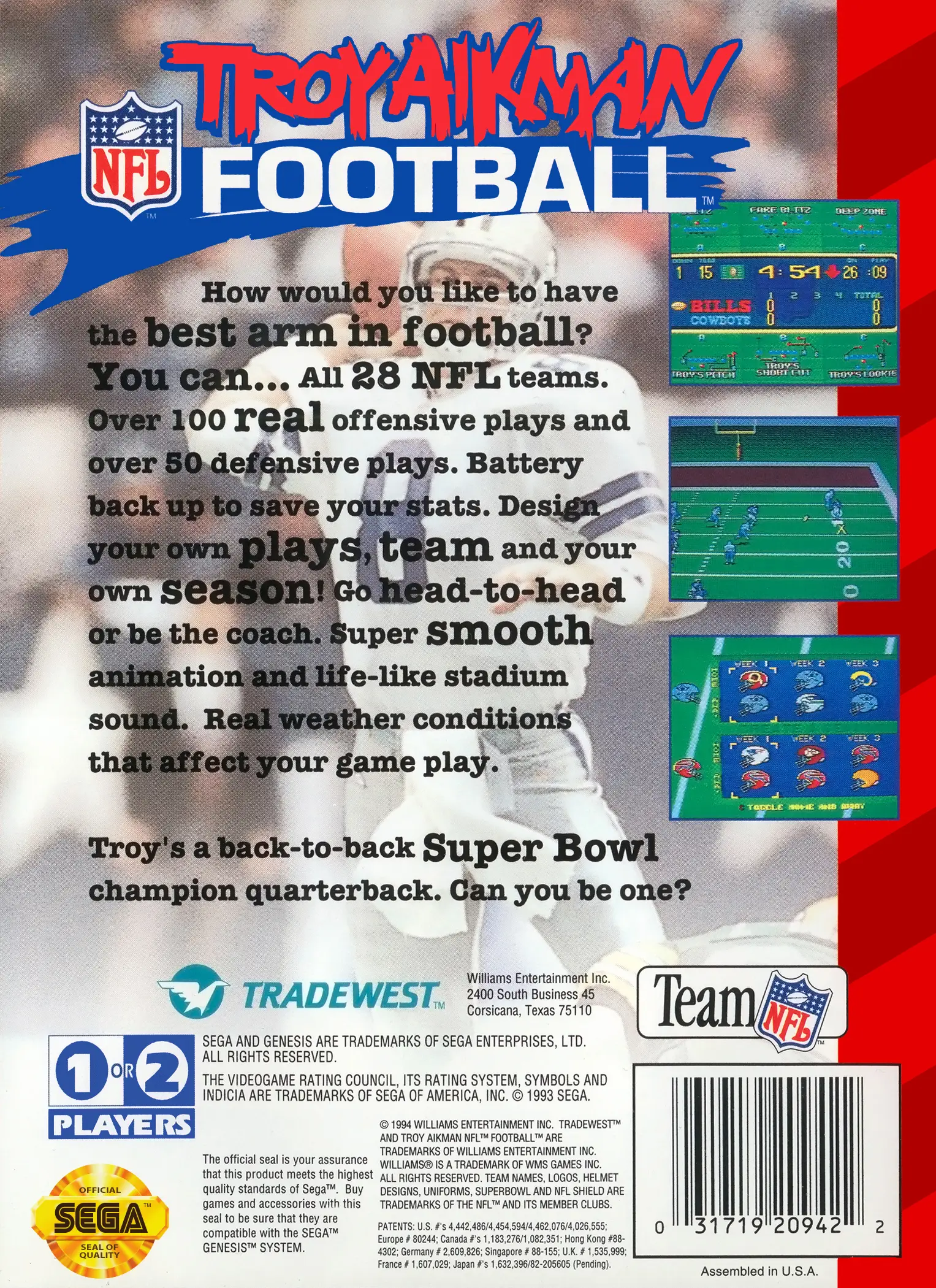 Troy Aikman is the first member of the 1993 Dallas Cowboys to have his namesake in a game, followed by Emmitt Smith in Emmitt Smith Football.