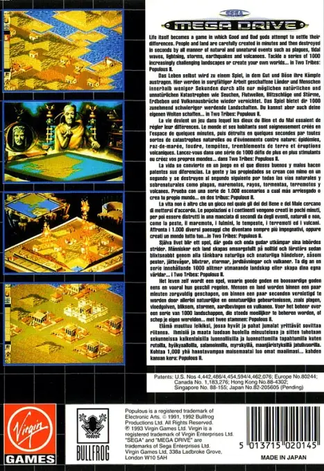 Two Tribes: Populous II is the sequel to Populous and was released for the Sega Mega Drive in 1993. This name is exclusive to the Mega Drive port – other versions of the game were titled Populous II: Trials of the Olympian Gods. It is currently unknown why the title was changed.