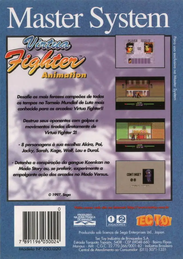 – 8 playable Virtua Fighter characters: Akira, Pai, Jacky, Sarah, Kage, Wolf, Lau or Dural.