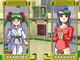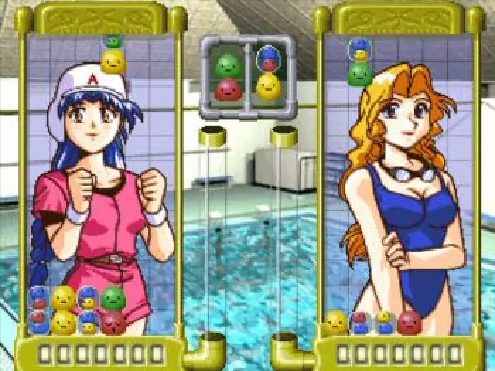 Clever twist on the puzzle formula in that the falling smiley blocks also sometimes contain two different coloured blocks adding an extra dimension to gameplay and making for some satisfying combo’s. There are also stoney faced blocks that can’t be destroyed so its best to concentrate and not to pay too much attention to what your character of an all girl cast is up to in the background, bikini clad or not.