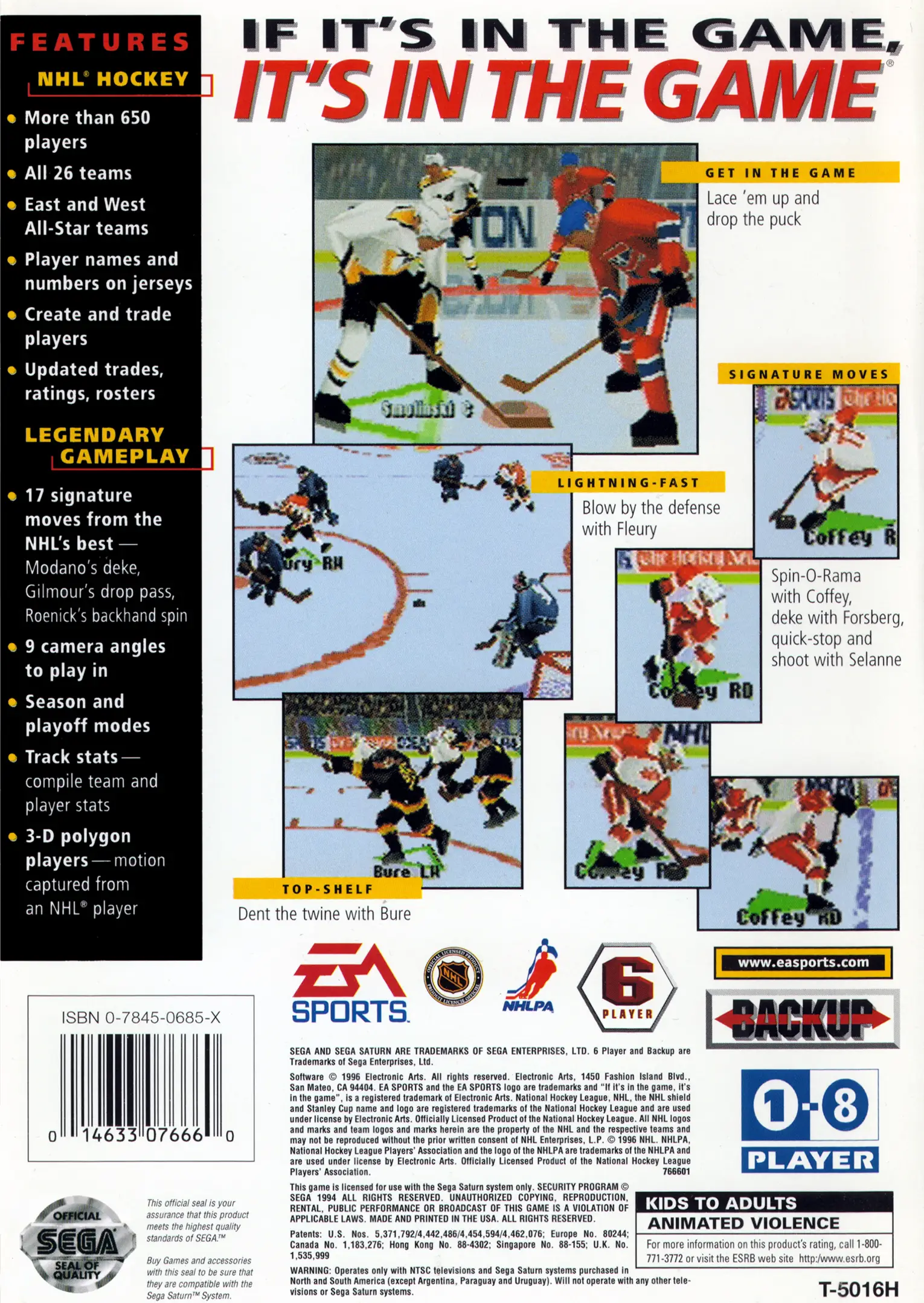 NHL 97 is an ice hockey video game by EA Sports. It was released on October 31, 1996 and was the successor to NHL 96. It is the sixth installment of the NHL series and the first to be released on both PlayStation and Saturn.