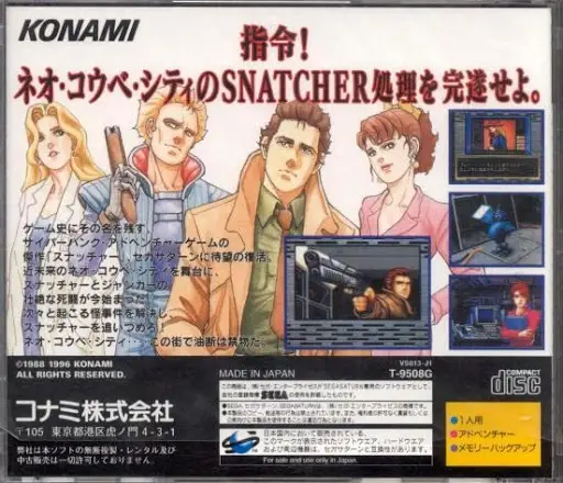 A.D. 2047. Neo Kobe City, Japan, a place of madness and decadence… A mysterious Bio-roid life form has appeared. Its true nature and purpose are unknown. Is it some country’s secret weapon, or an alien from another world? They slay their victims and take their place, earning them the nickname “SNATCHERS.” A new police division – J.U.N.K.E.R.s – has been formed. They are trained specifically to combat the SNATCHERS. The fate of mankind hangs in the balance. The war between the SNATCHERS and J.U.N.K.E.R.s has begun!
