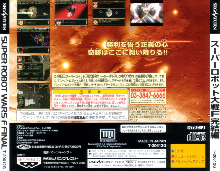 The end of the first game “Super Robot Taisen F” with more 30 missions to play with the same rooster of giant robots in SD format.