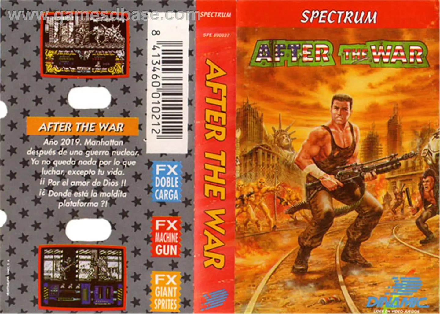 After The War is a video game published in 1989 by Dinamic Software, in which the player controls a character through a post-apocalyptic city, probably after a nuclear war. Released and unreleased artworks by Luis Royo and Alfonso Azpiri reveals that the city should be a post-nuclear version of New York City.