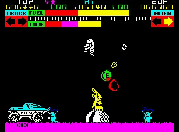 Lunar Jetman is a shooter video game developed and published by Ultimate Play The Game. It was released for the ZX Spectrum in 1983 and the BBC Micro in 1984.[1] The game is the second instalment of the Jetman series and one of the few games released to support the Currah Microspeech peripheral. In the game, Jetman has to destroy alien bases whilst simultaneously defending himself, along with Earth, from a hostile alien race.