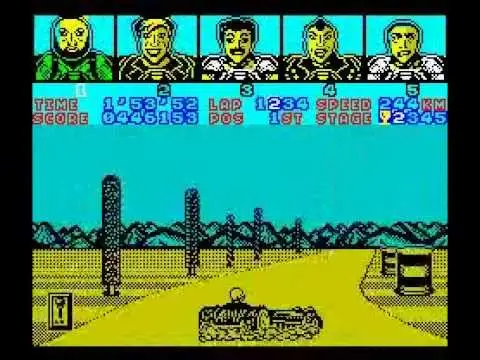 There are 5 tracks to choose from, each with 5 stages. The stages range from cities, to deserts to tracks over water. There are also 12 drivers to pick from, from businessmen to skinheads and mohicans.