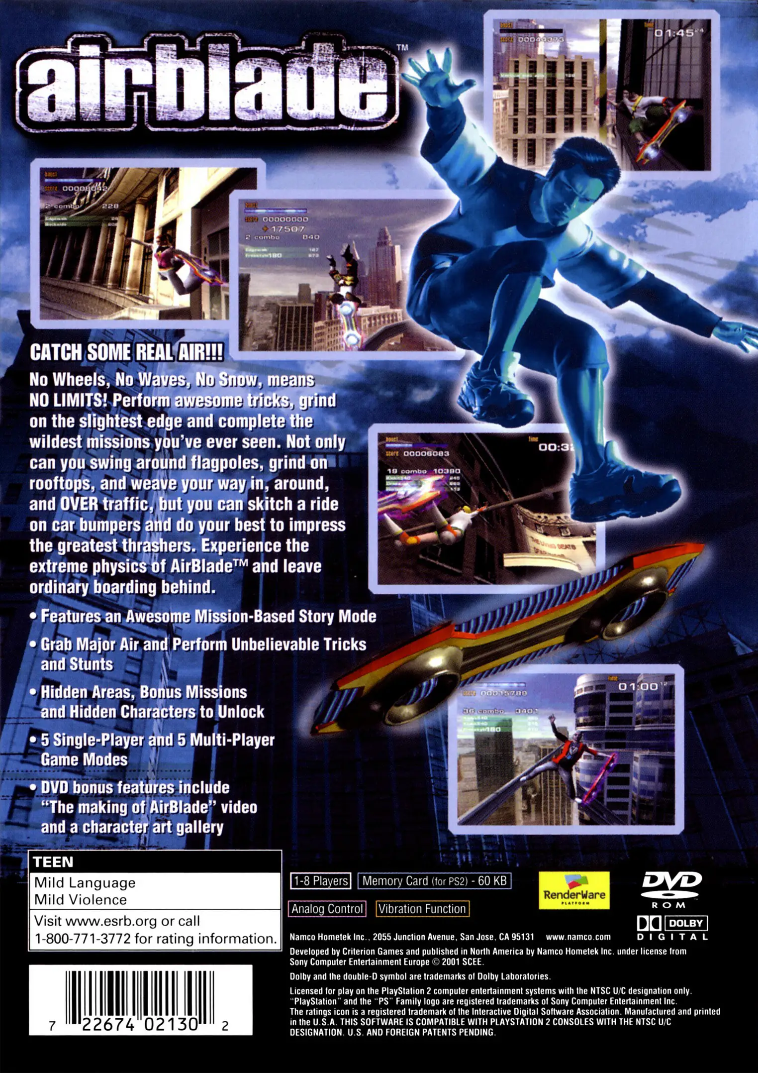 AirBlade takes place in the near future as a man named Oscar has developed a perpetual energy source that will revolutionize the world, however, the GCP Corporation has discovered it as well and fears that it will hurt the company which is heavily invested in the oil companies. Desperate, they kidnap Oscar in an attempt to silence him, but before he is captured, he gives his friend Ethan a prototype hoverboard called the AirBlade.
