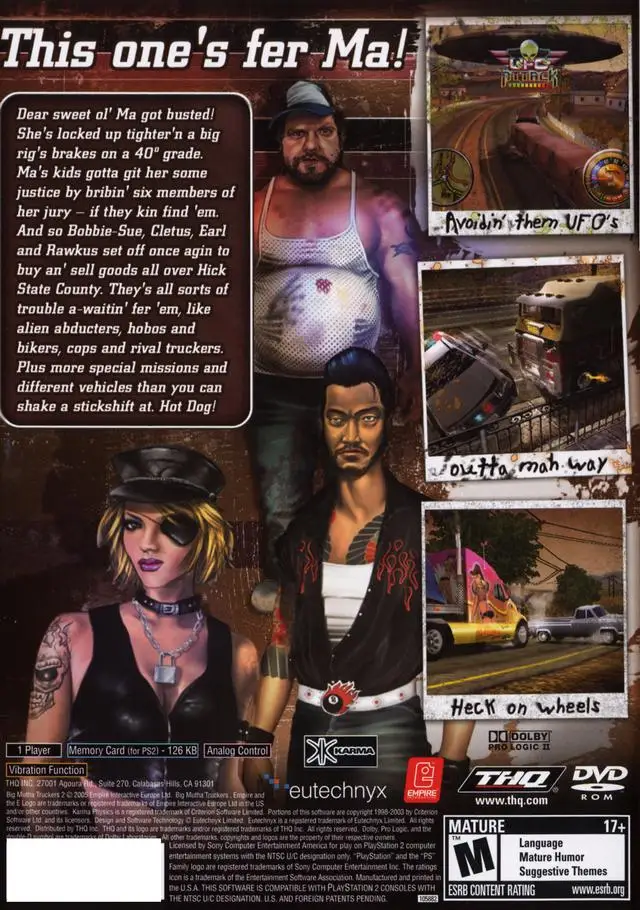 Big Mutha Truckers 2 (released in Europe as Big Mutha Truckers 2: Truck Me Harder) is the sequel to the video game Big Mutha Truckers. Unlike its predecessor, the game was cancelled for the Nintendo GameCube.